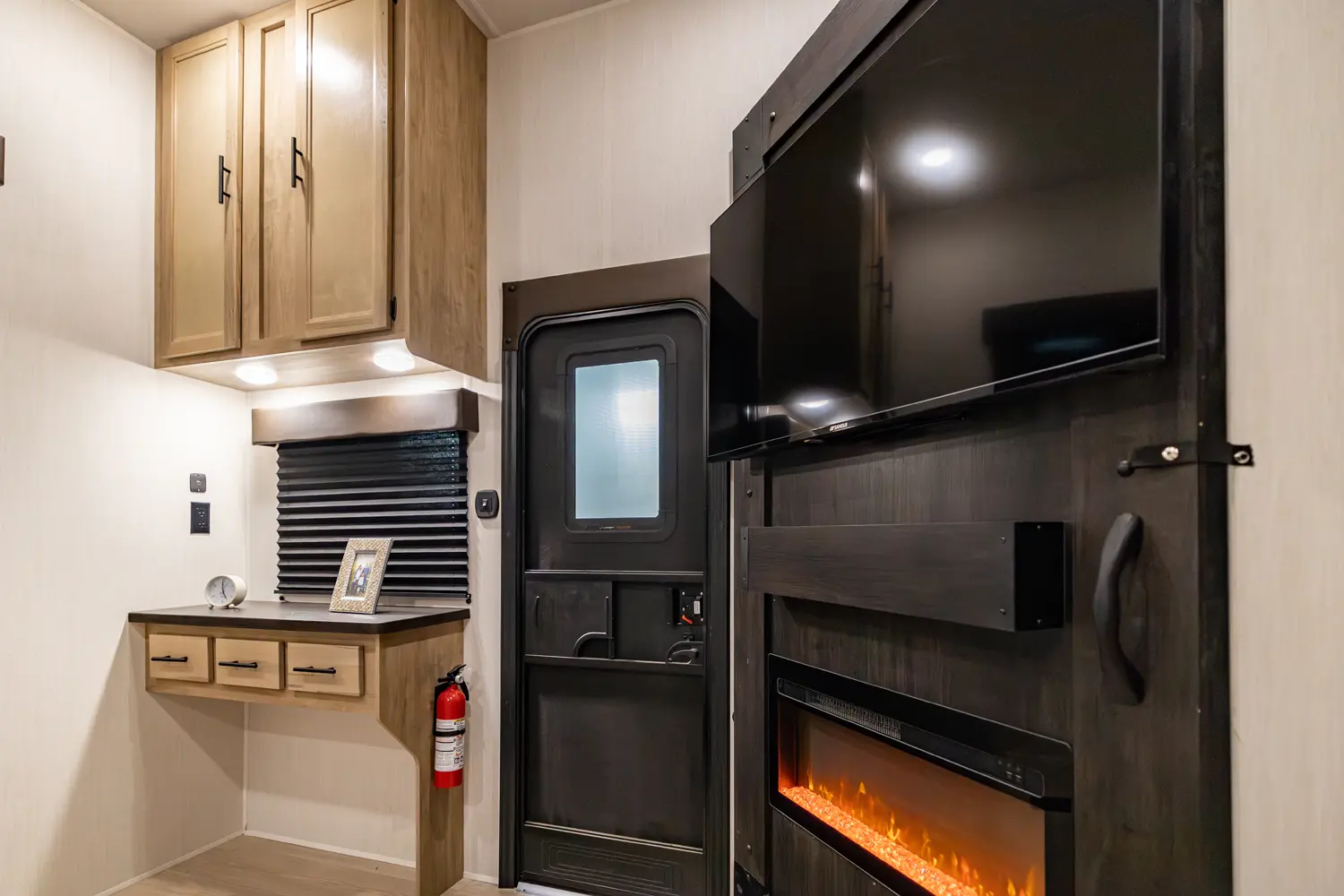• Blackout Glass, Safety Slam, Friction Hinge Entry Door with Window and Shade Prep (N/A on LP models)