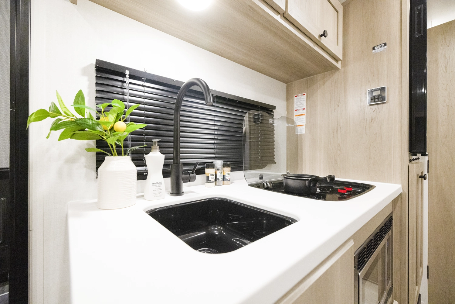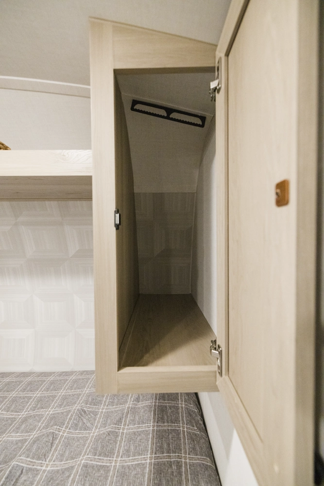The 17LE is a lightweight, affordable bunkhouse camper built without sacrificing the quality Flagstaff is known for. Its compact design makes towing easy while features like durable 6 side aluminum framing and vacuum bonded walls and roof ensure long lasting performance. Perfect for first time buyers or budget conscious adventurers the 17LE Delivers reliable, high-quality camping in a nimble, easy-to-handle package.