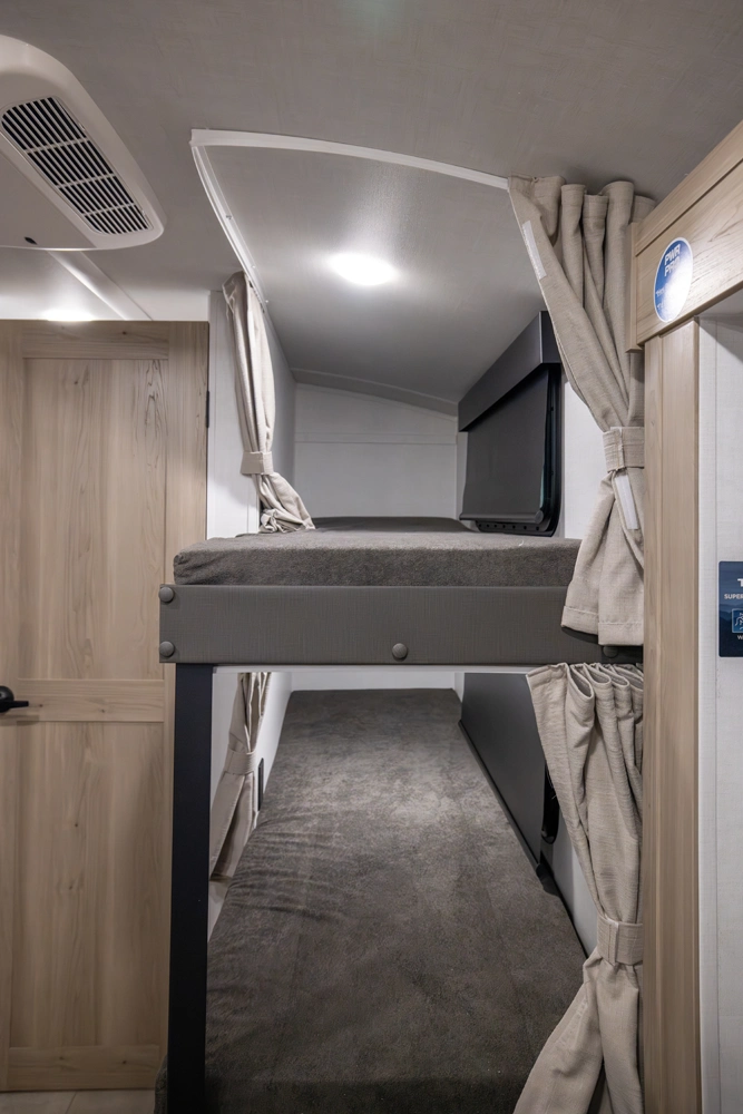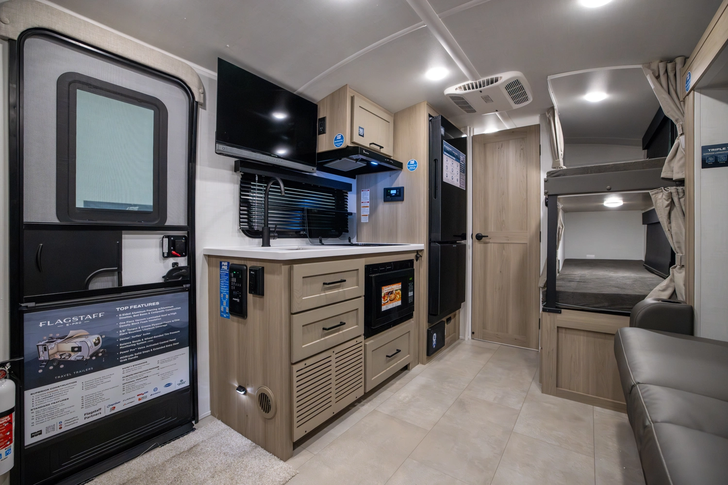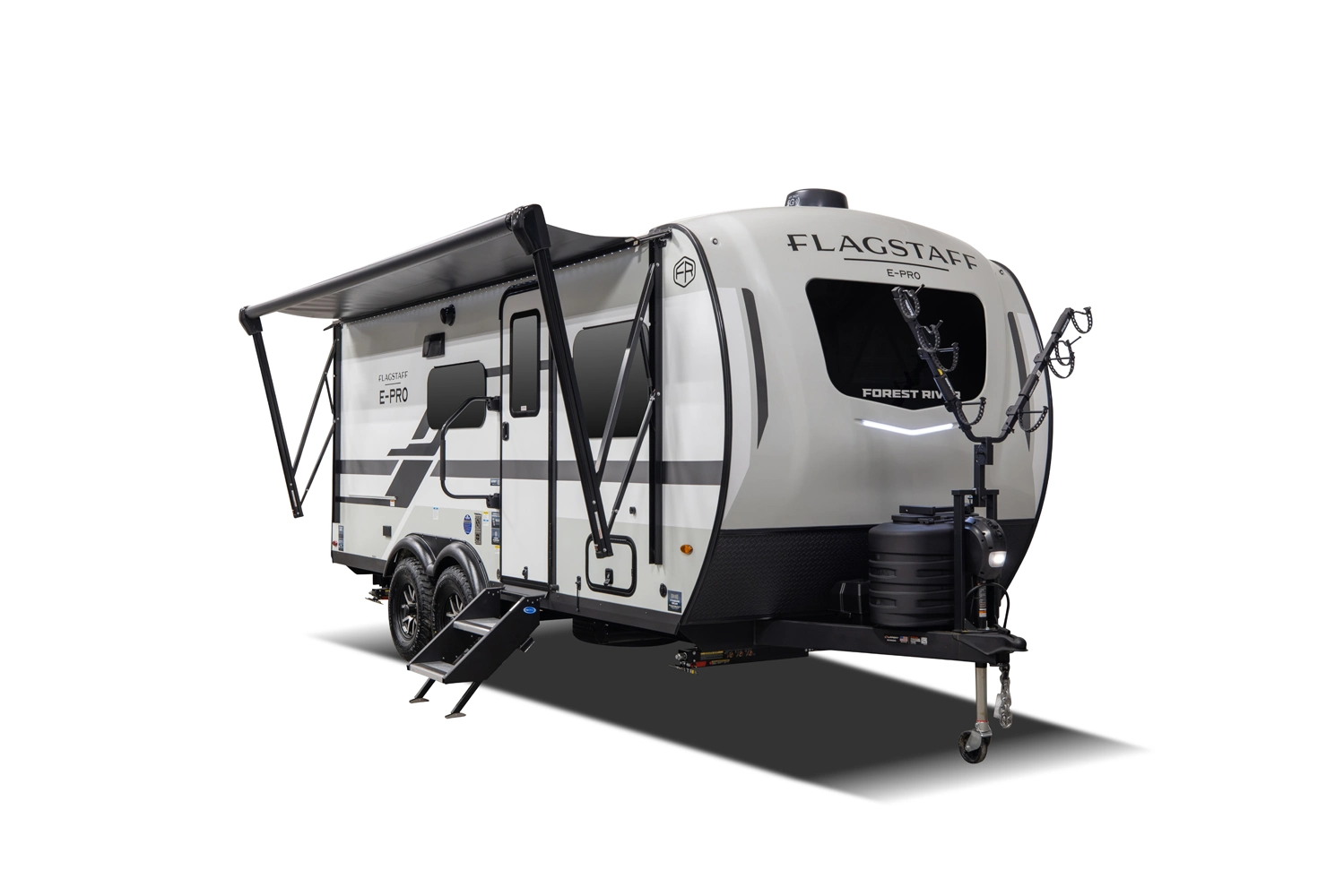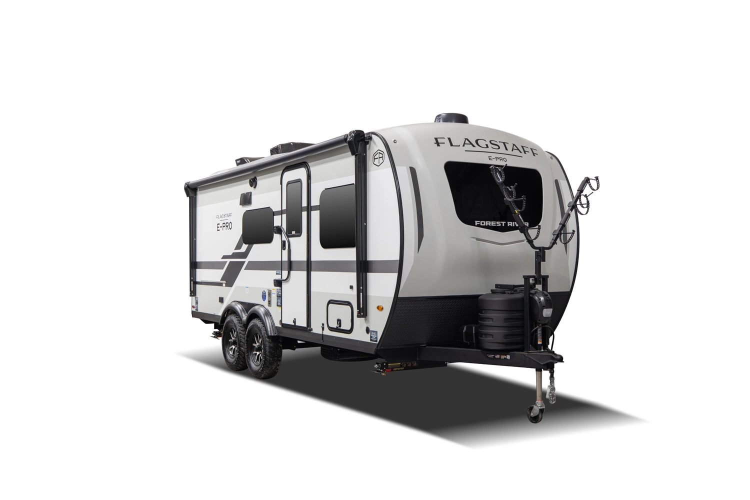 The Flagstaff E-Pro 20BHT is a compact bunkhouse packed with smart features! It’s our second E-Pro with a dual axle setup, giving you improved towing stability and durability on the road. And just over 21 feet long and around 4,000 lbs. dry, it’s easy to tow while still offering comfortable sleeping space, a functional kitchen, and modern off grid features!