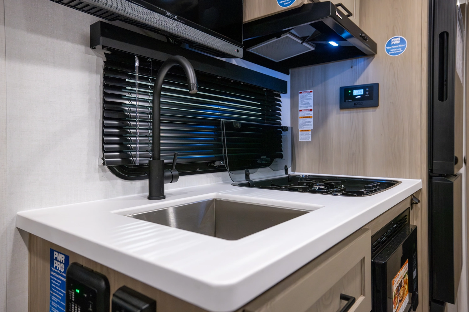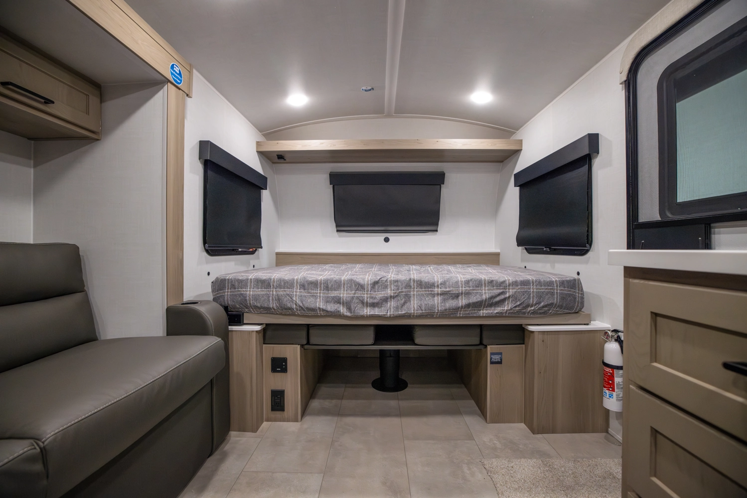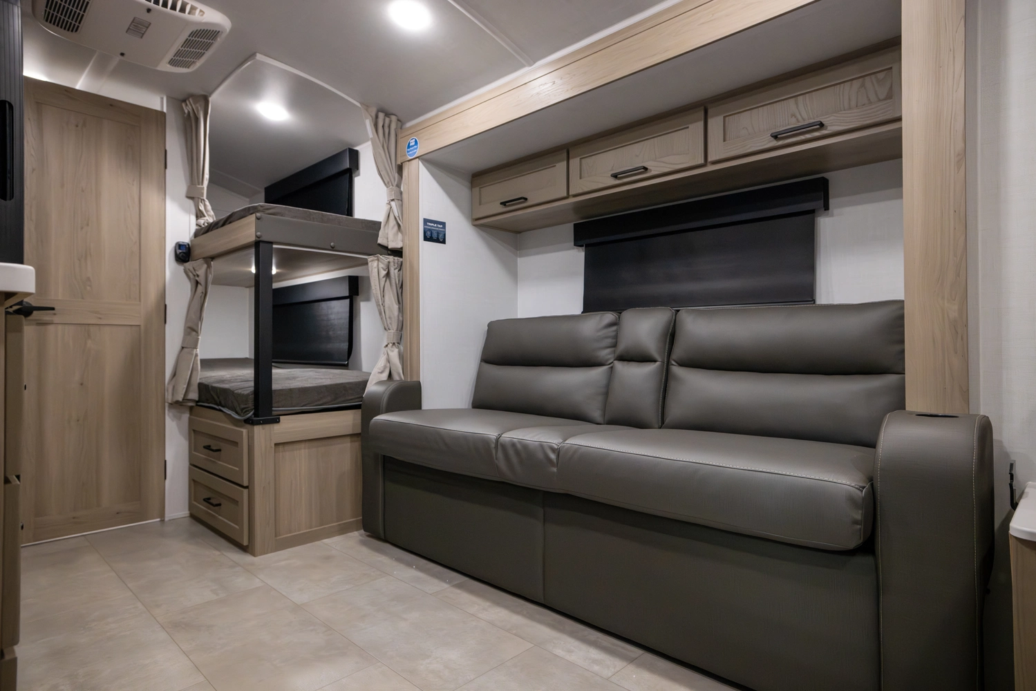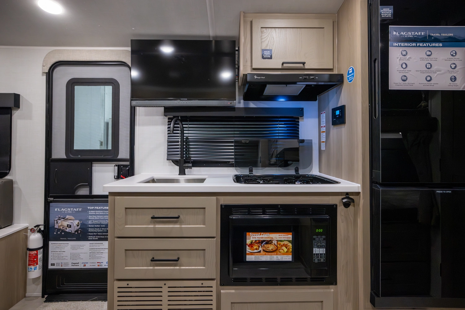 The Flagstaff E-Pro 20BHT is a compact bunkhouse packed with smart features! It’s our second E-Pro with a dual axle setup, giving you improved towing stability and durability on the road. And just over 21 feet long and around 4,000 lbs. dry, it’s easy to tow while still offering comfortable sleeping space, a functional kitchen, and modern off grid features!