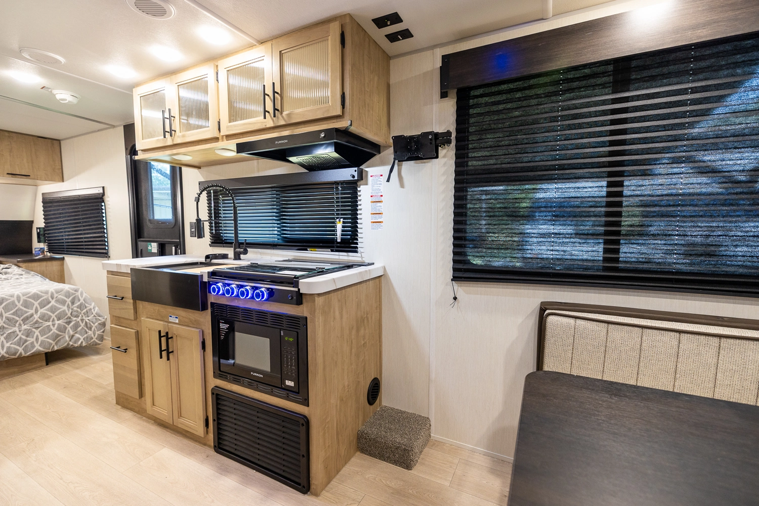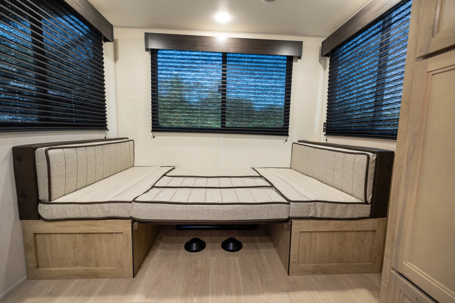 The Grey Wolf 20RDSE by Forest River is a stylish and functional travel trailer, perfect for couples seeking a compact and luxurious camping experience. Its open-concept design, with an extra-large U-shaped dinette and a huge rear window, creates a spacious and inviting atmosphere. The modern kitchen, full bathroom, walk-around queen bed, and ample storage space provide all the comforts of home. Experience the perfect blend of style, comfort, and convenience with the Grey Wolf 20RDSE.