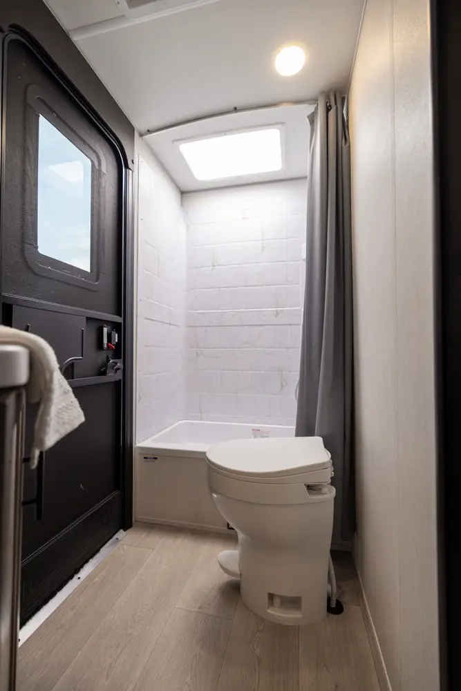 • Blackout Glass, Safety Slam, Friction Hinge Entry Door with Window and Shade Prep (N/A on LP models)