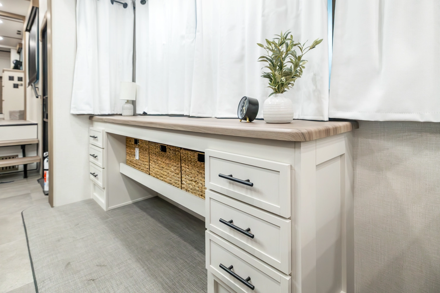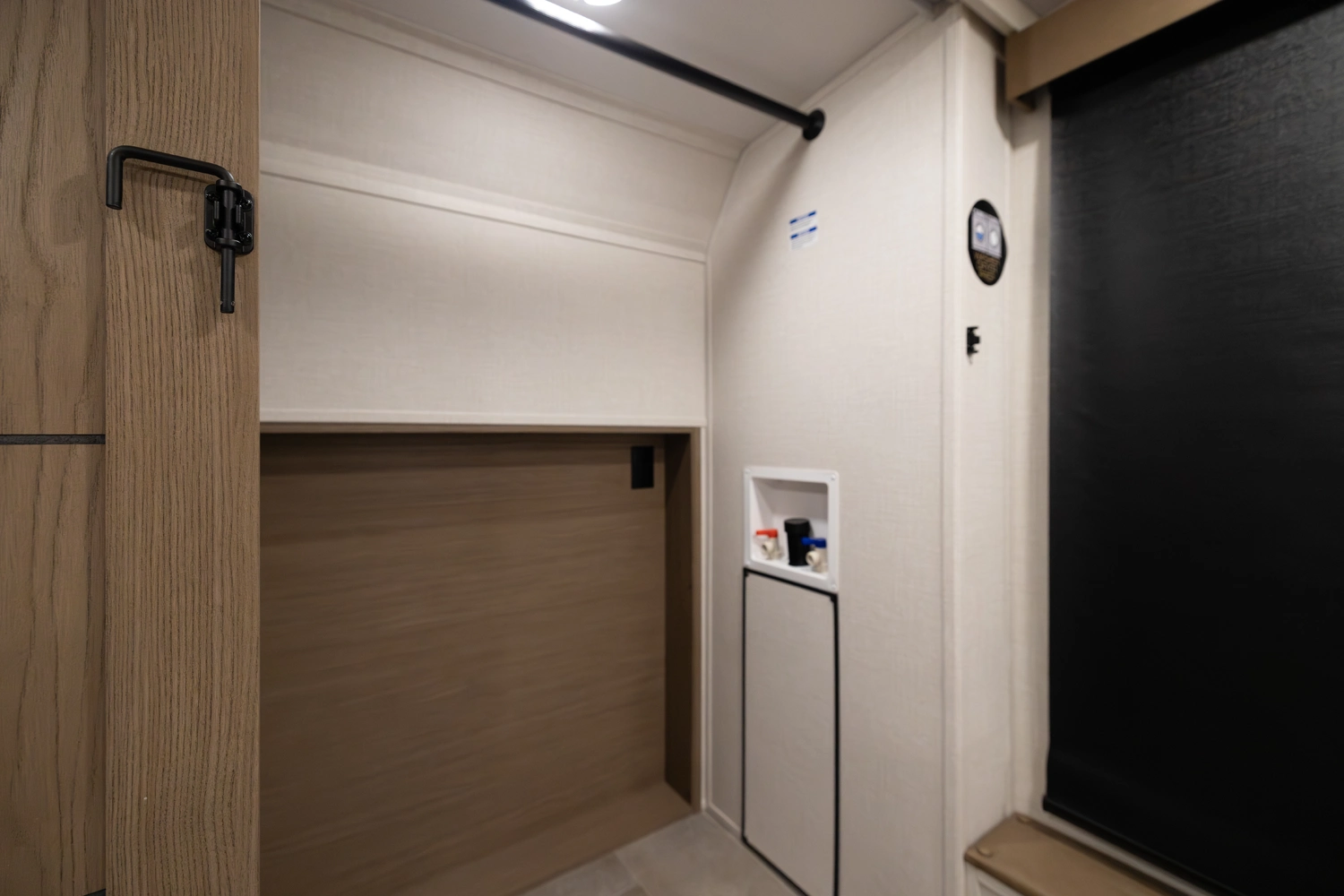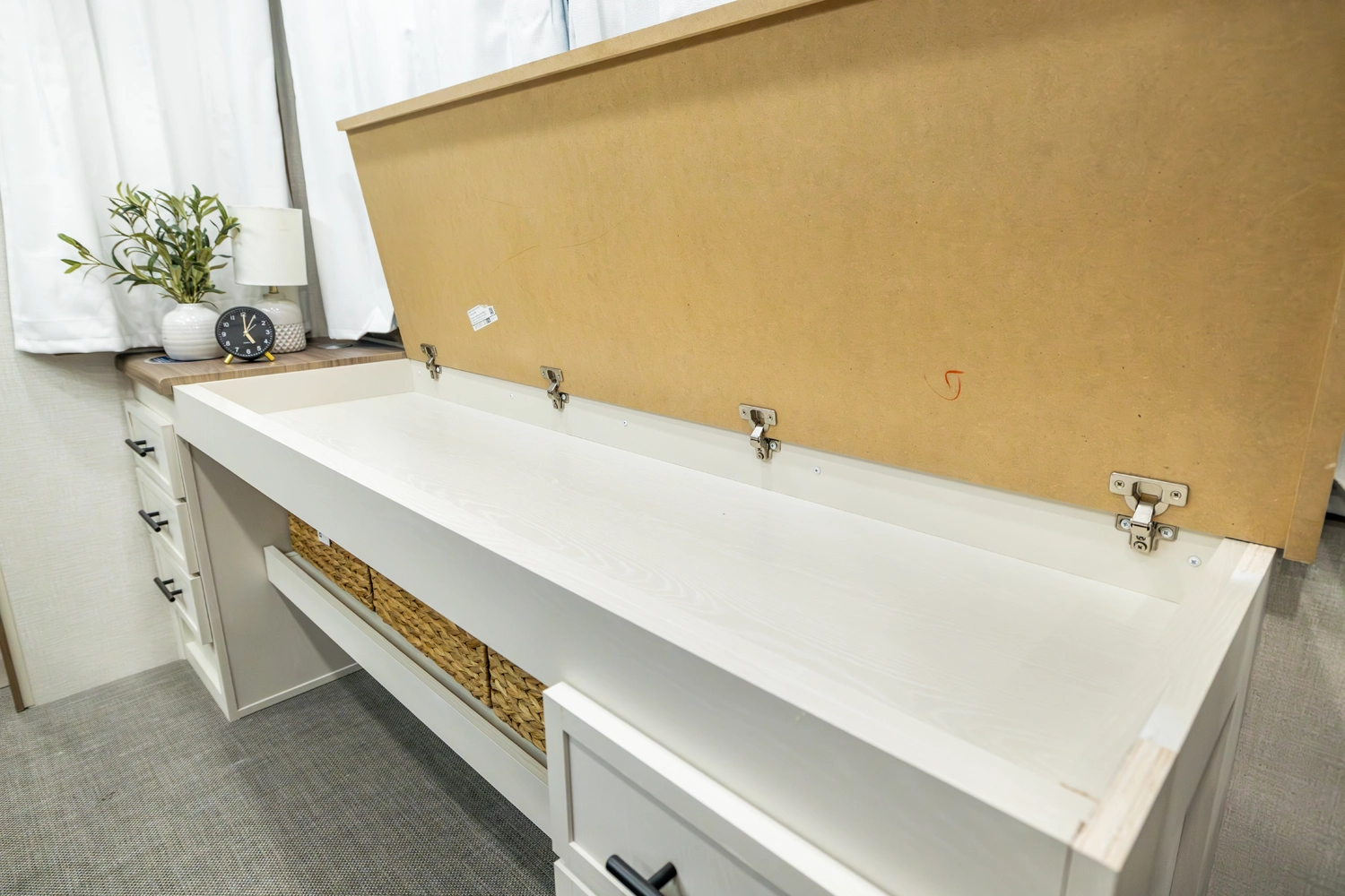 • 110 Outlet & 12V Charging Ports Beside Bed