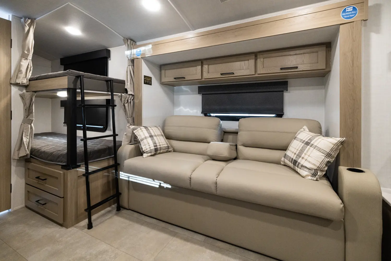 The Rockwood Geo Pro 20BHT is a compact bunkhouse packed with smart features! It’s our second Geo Pro with a dual axle setup, giving you improved towing stability and durability on the road. And just over 21 feet long and around 4,000 lbs. It’s easy to tow while still offering comfortable sleeping space, a functional kitchen, and modern off grid features!